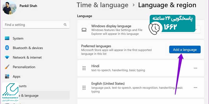 - در صورتی که هنگام نصب ویندوز 11 فارسی را انتخاب کرده باشید، برای تغییر زبان کافی است روی Windows display language بزنید. در غیر این صورت Add a language را انتخاب نمایید.