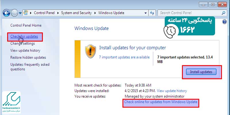 - در مرحله بعد روی لینک Optional update بزنید. چنانچه نتوانستید این آیتم را مشاهده کنید، می توانید به جای آن روی لینک Check online for updates from Microsoft Update کلیک نمایید.